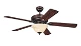 - Two-light 52-inch reversible 5-blade indoor ceiling fan for rooms up to 360 square feet (18-by-20 feet)